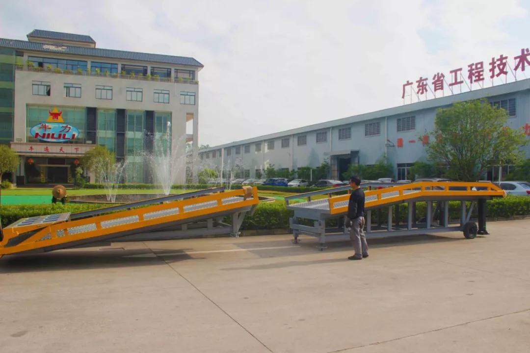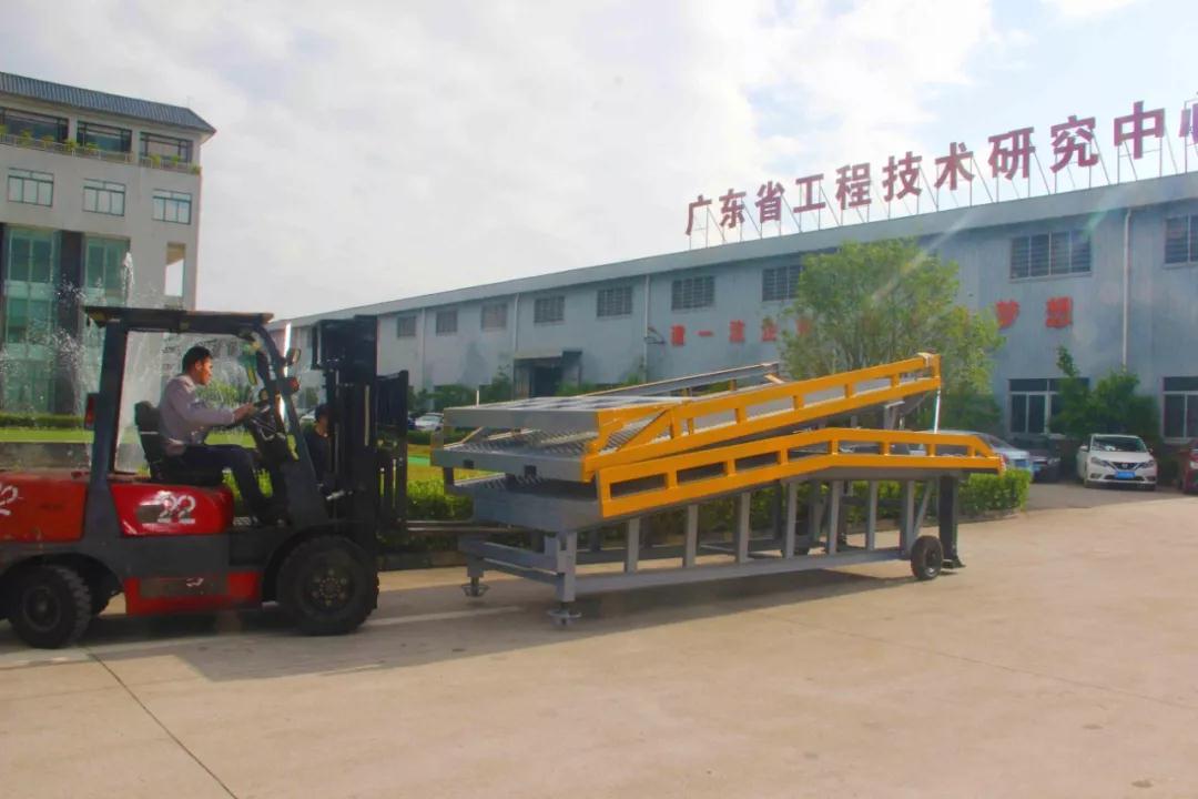 折疊式登車橋是與叉車配合使用的貨物裝卸輔助設(shè)備,在地面和車輛之間搭起橋梁,可根據(jù)汽車車廂的高低調(diào)節(jié)高度,叉車可以直接通過它駛?cè)胲噹麅?nèi)進(jìn)行貨物的裝卸作業(yè)。