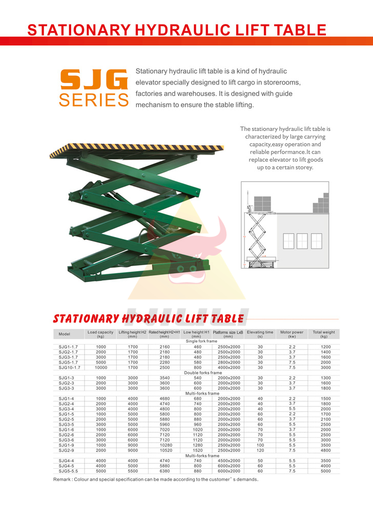 Stationary hydraulic lift table is a kind of hydraulic elevator specially designed to lift cargo in storerooms,