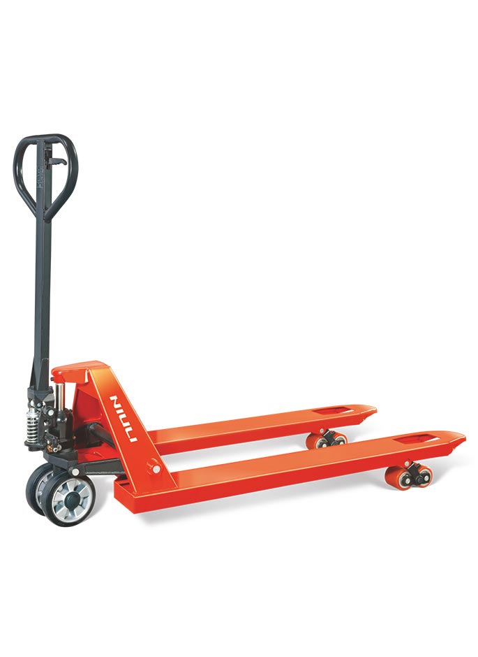 手動(dòng)液壓搬運(yùn)車是簡便、有效、常見的裝卸、搬運(yùn)工具,是車間貨物搬運(yùn)的好幫手。DF型搬運(yùn)車采用高強(qiáng)度焊接油泵,配置安全閥,油泵殼座為機(jī)械、液壓集成一體化,防漏可靠,免維護(hù)、免裝拆,轉(zhuǎn)彎半徑小。