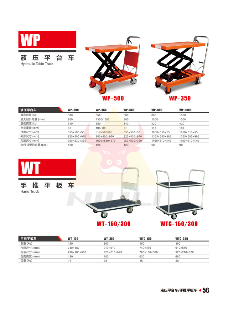 WP液壓平臺車采用高強度鋼材制作而成,設(shè)計結(jié)構(gòu)合理,安全平穩(wěn)可靠,內(nèi)裝安全閥,全密封油缸,手動控制液壓系統(tǒng)升降,操作方便簡捷。 配有導向輪向輪節(jié)省操作者的體力,并能保護載重輪與托盤載重輪。